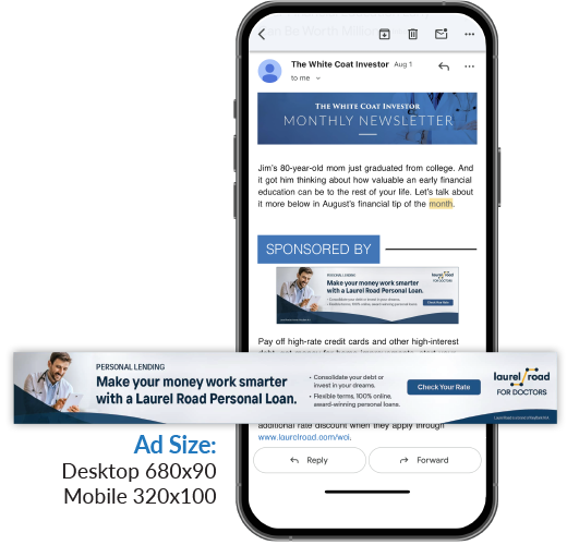 The audience for this site consists mainly of physicians but also includes dentists, advanced practice clinicians, lawyers, pharmacists, engineers, and other highly paid professionals in search of financial and investing information. Placement of an ad here allows you to focus on this “high-yield” audience. You can better understand our white coat investor community by reviewing the results of our most recent survey.