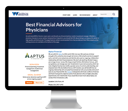 One of The White Coat Investor’s core missions is to connect our high-income readers and their students, trainees, and partners with the best-in-class financial resources. One way WCI accomplishes that is by selling advertising to companies or people who are great at what they do. If you think you or your company would be a good fit, consider becoming an advertising partner.