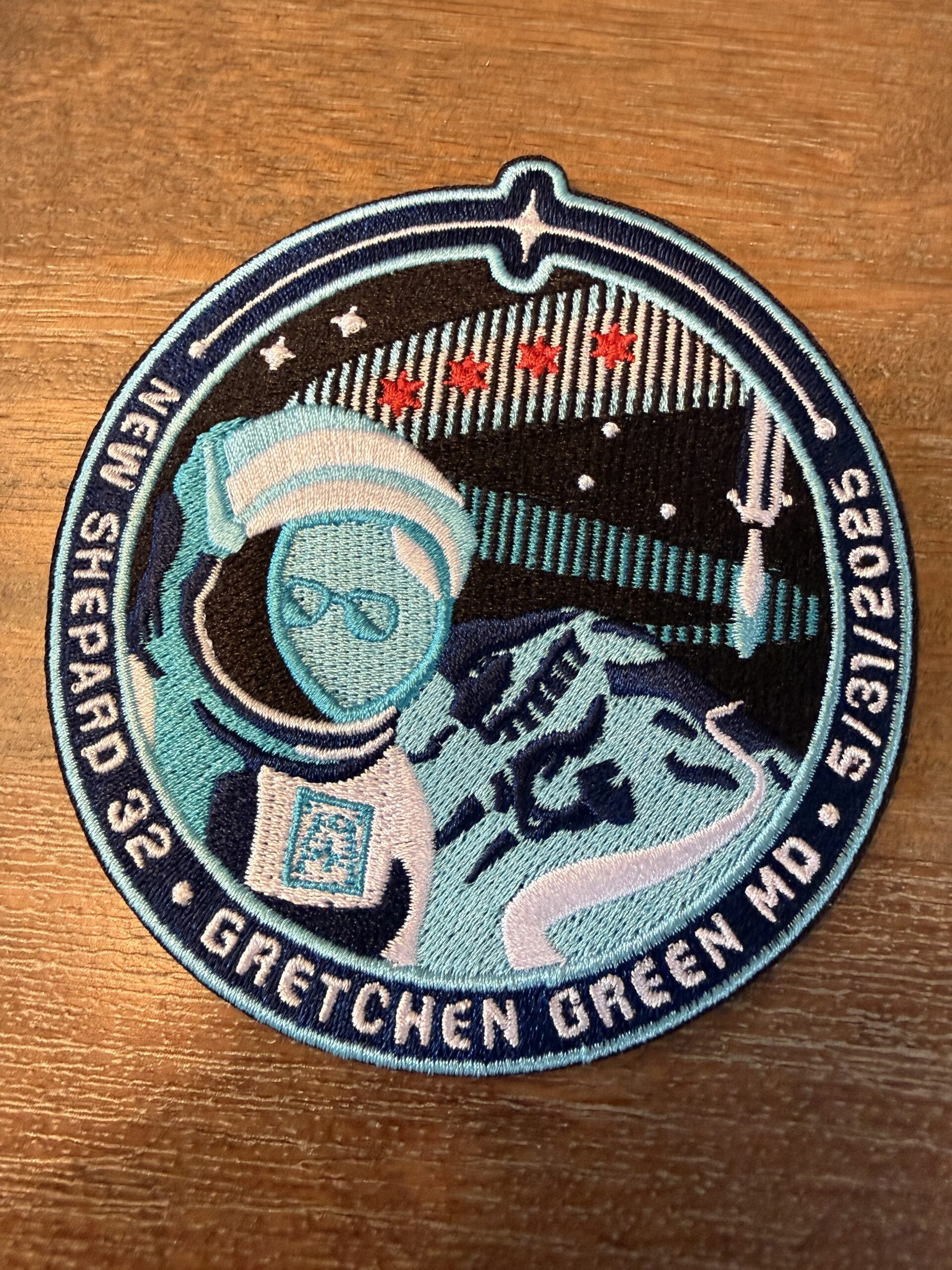 After telling her about my interest in space (mostly through my father, who designed a few crew patches for those who launched during the space shuttle era and who designed the original building of the US Astronaut Hall of Fame in the 1990s), she generously sent me one of her personalized patches that she flew into space on May 31, 2025.