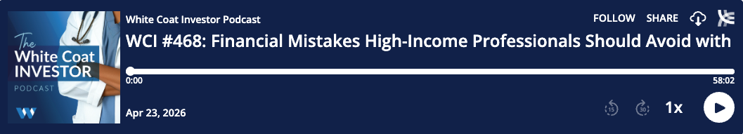 The White Coat Investor Podcast is for your entertainment and information only and should not be considered financial, legal, tax, or investment advice. Investing involves risk, including the possible loss of principal. You should consult the appropriate professional for advice specific to your situation.