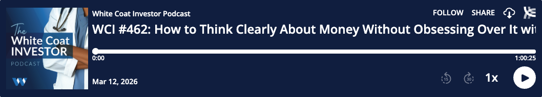 The White Coat Investor Podcast is for entertainment and informational purposes only and should not be considered financial, legal, tax, or investment advice. Investing involves risk, including the possible loss of principal. You should consult the appropriate professional for advice specific to your situation.