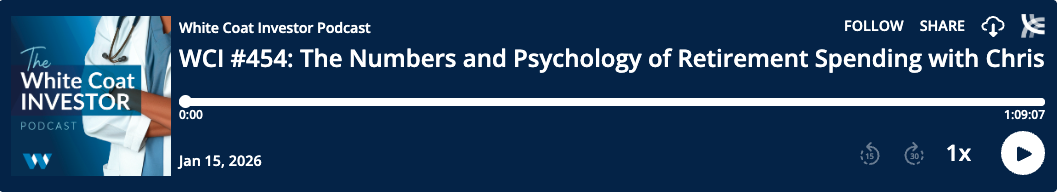 The White Coat Investor podcast is for your entertainment and information only. It should not be considered financial, legal, tax, or investment advice. Investing involves risk, including the possible loss of principal. You should consult the appropriate professional for specific advice relating to your situation.
