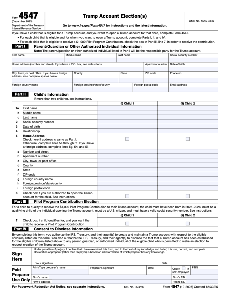 A few complications exist that you need to know about. The first is that if you have had a kid born in 2025 or you anticipate one born in 2026, you can get the government's $1,000 in the summer of 2026, but only if you file IRS Form 4547. Which must be filed with your 2025 tax return. Which you've probably already filed. You can still go back and file the form. Even if you may need to include a 1040X with it, which isn't entirely clear, that's really not a big deal. Otherwise, you have to wait until next year to get your $1,000.